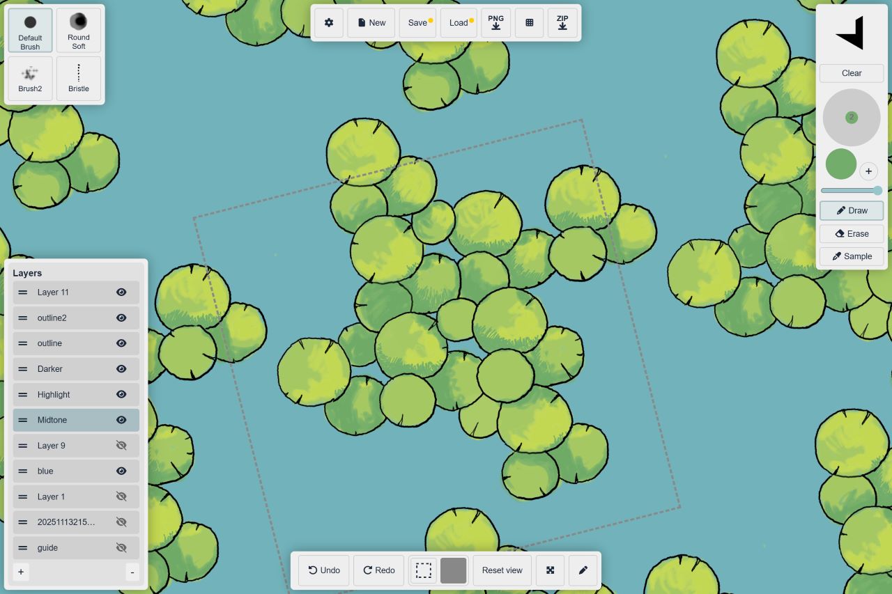 This is where drawing tiles directly often breaks down. I am constantly zooming in and out, checking edges, flipping between layers, or mentally tracking all the possible adjacency combinations. It slows down creativity, and it makes variation e.g. stylistic experiments, hand-drawn touches, subtle perturbations difficult to achieve consistently.