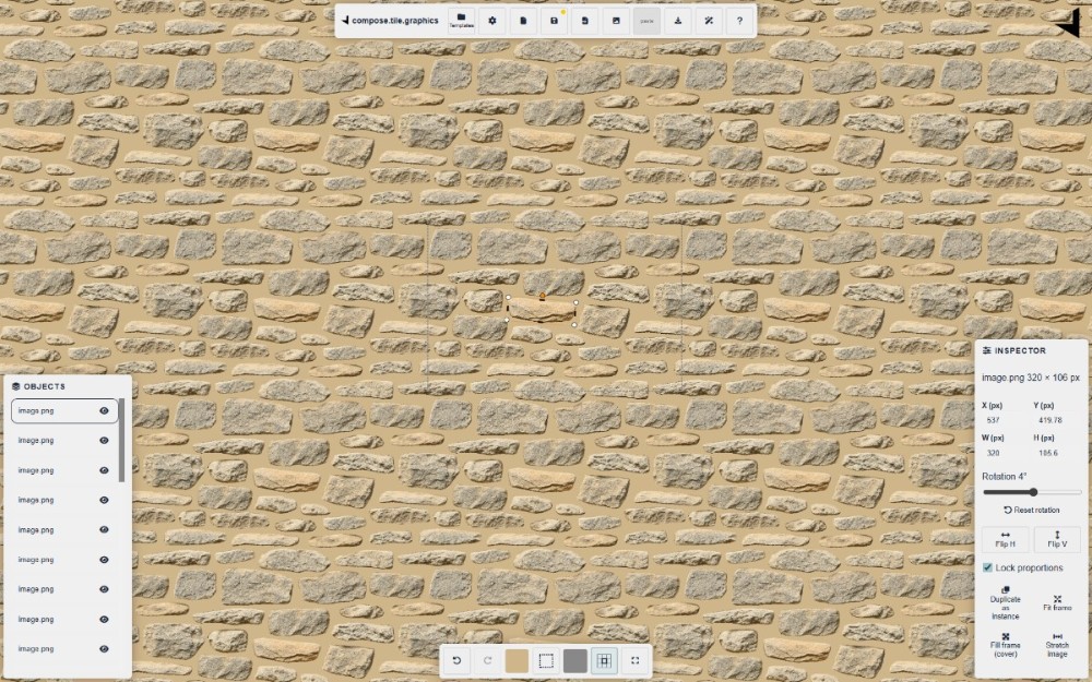 1. Compose a stone wall using transparent PNG of indiviudal stones.